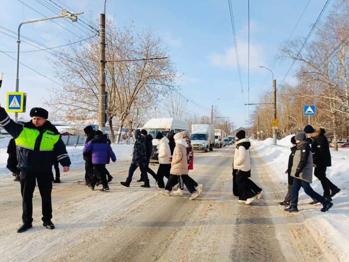 Посетили инспектора и среднюю школу №35 областного центра, где не только поговорили с учащимися о правилах движения для всех участников дорожного движения, но и провели практическое занятие на пешеходном переходе.